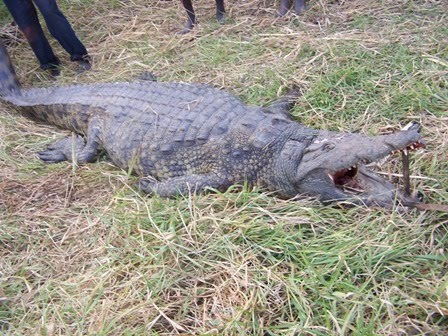 We always talk about Crocodiles being in the same river that we Baptize people in. Of course, we don't often see these creatures during the baptismal services. Just last week we had 47 people baptized in the Kafulafuta River - this week, a deacon from one of our churches killed a 14 foot crocodile!! Anyone want to be baptized????